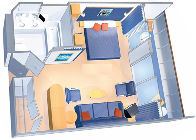 | J4 - Junior Suite s balkónom 26 m² + balkón 4,5 m² / niektoré kajuty majú obmedzený výhľad. Max 2 osoby. Výhody Junior Suite. | 5 028 € 1 257 € za osobu | ||