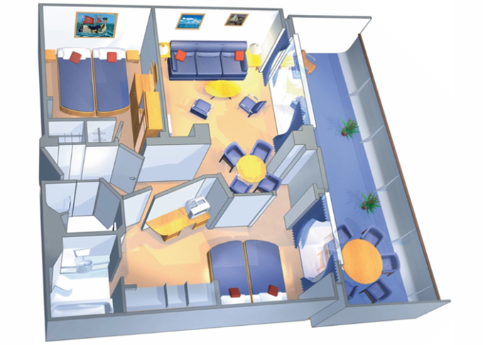 | J3 - Junior Suite s balkónom 26 m² + balkón 4,5 m² / niektoré kajuty majú obmedzený výhľad. Max 3-4 osoby. | 4 374 € 4 374 € za osobu | ||