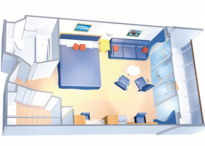 | J4 - Junior Suite s balkónom 26 m² + balkón 4,5 m² / niektoré kajuty majú obmedzený výhľad. Max 2 osoby. Výhody Junior Suite. | 3 845 € 3 845 € za osobu | ||