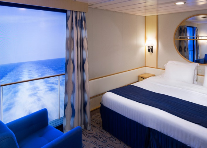 | 2U - Vnútorná kajuta s virtuálnym balkónom 15 m². Obrazovka veľkosti balkónových dverí s premietaným výhľadom. Max 2 osoby. | 990 € 495 € za osobu | ||